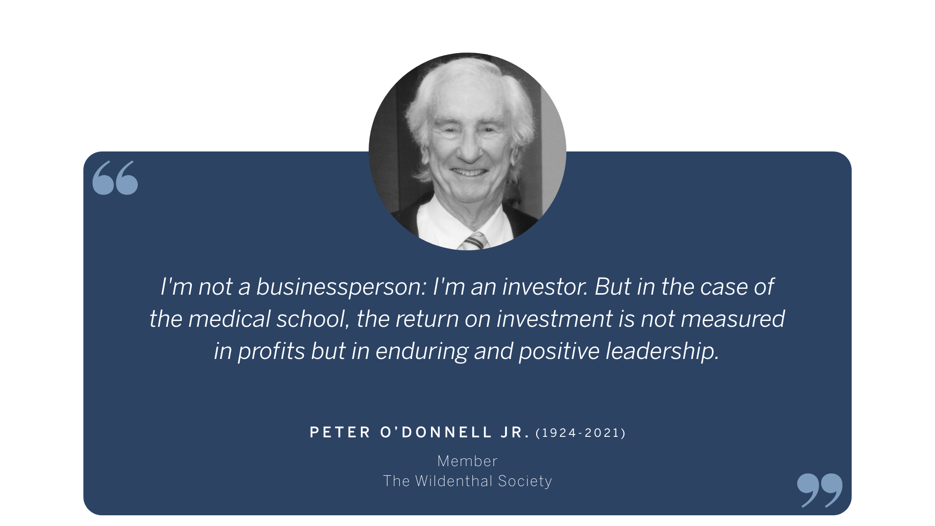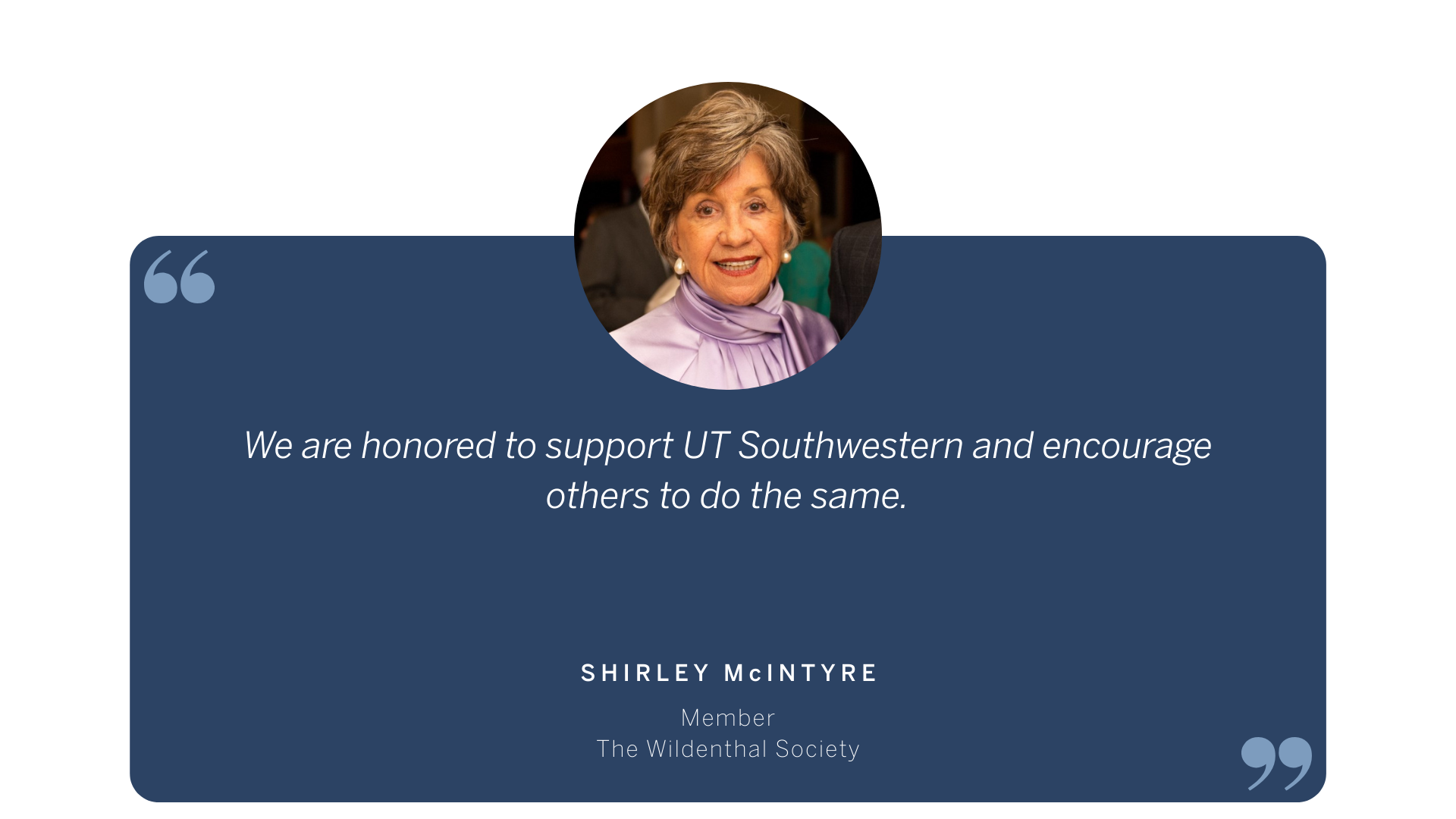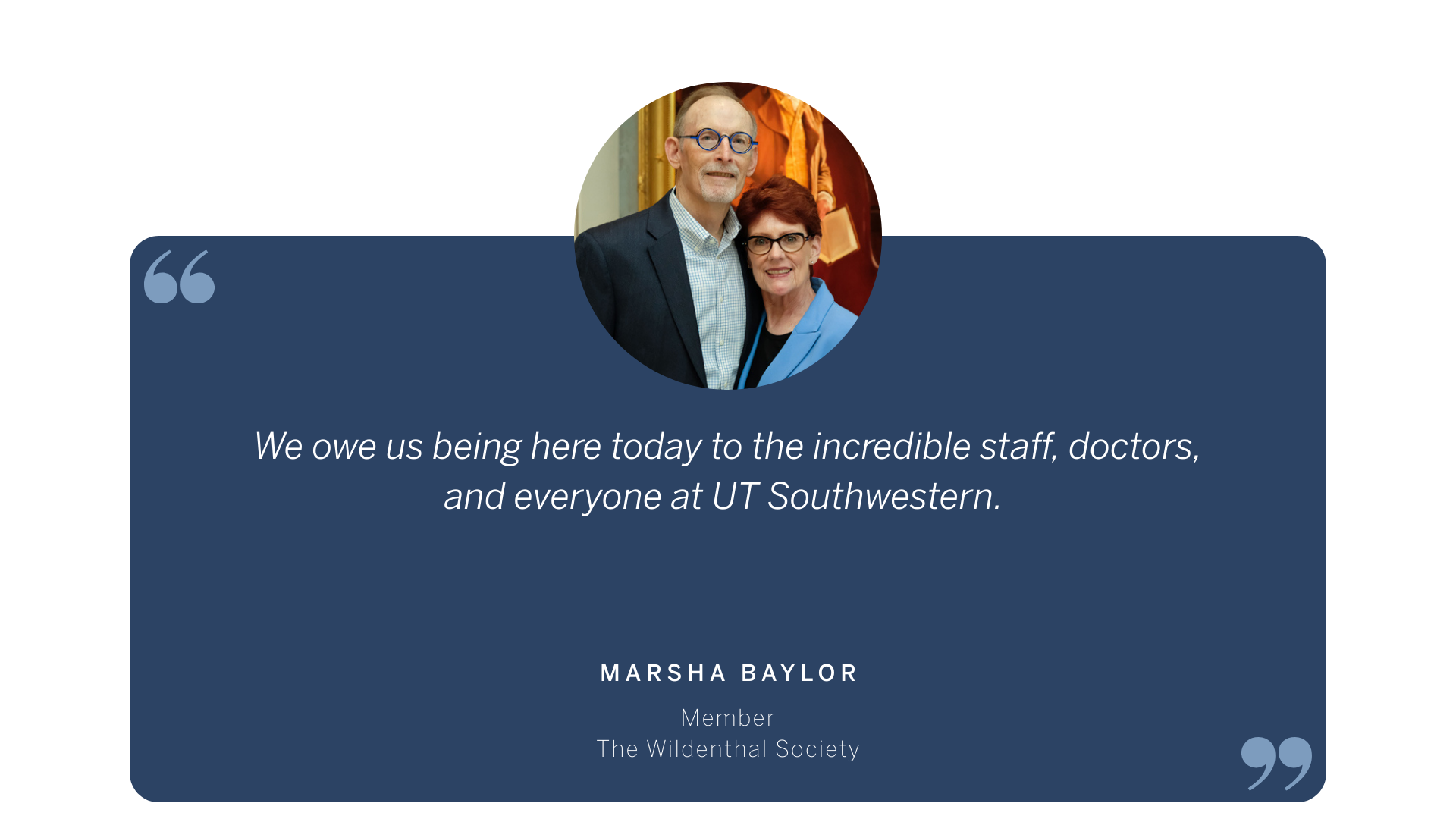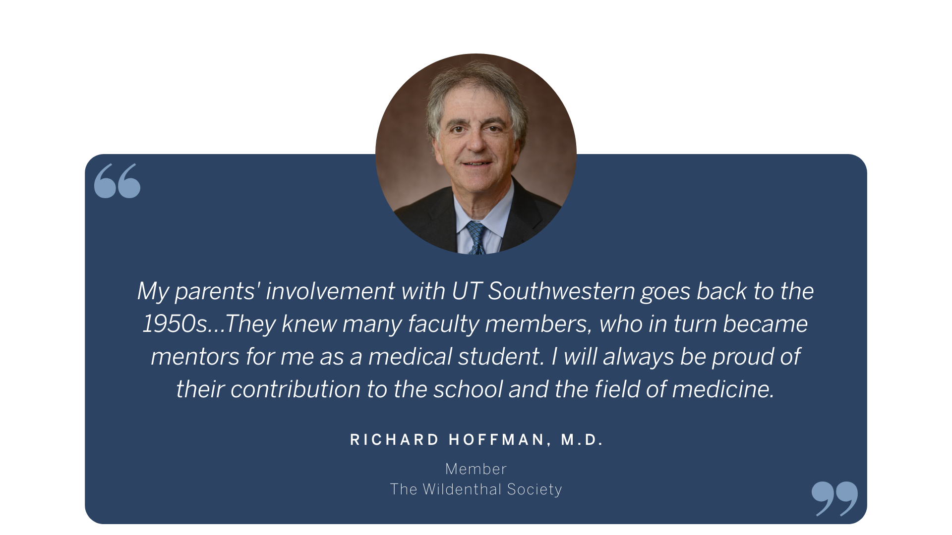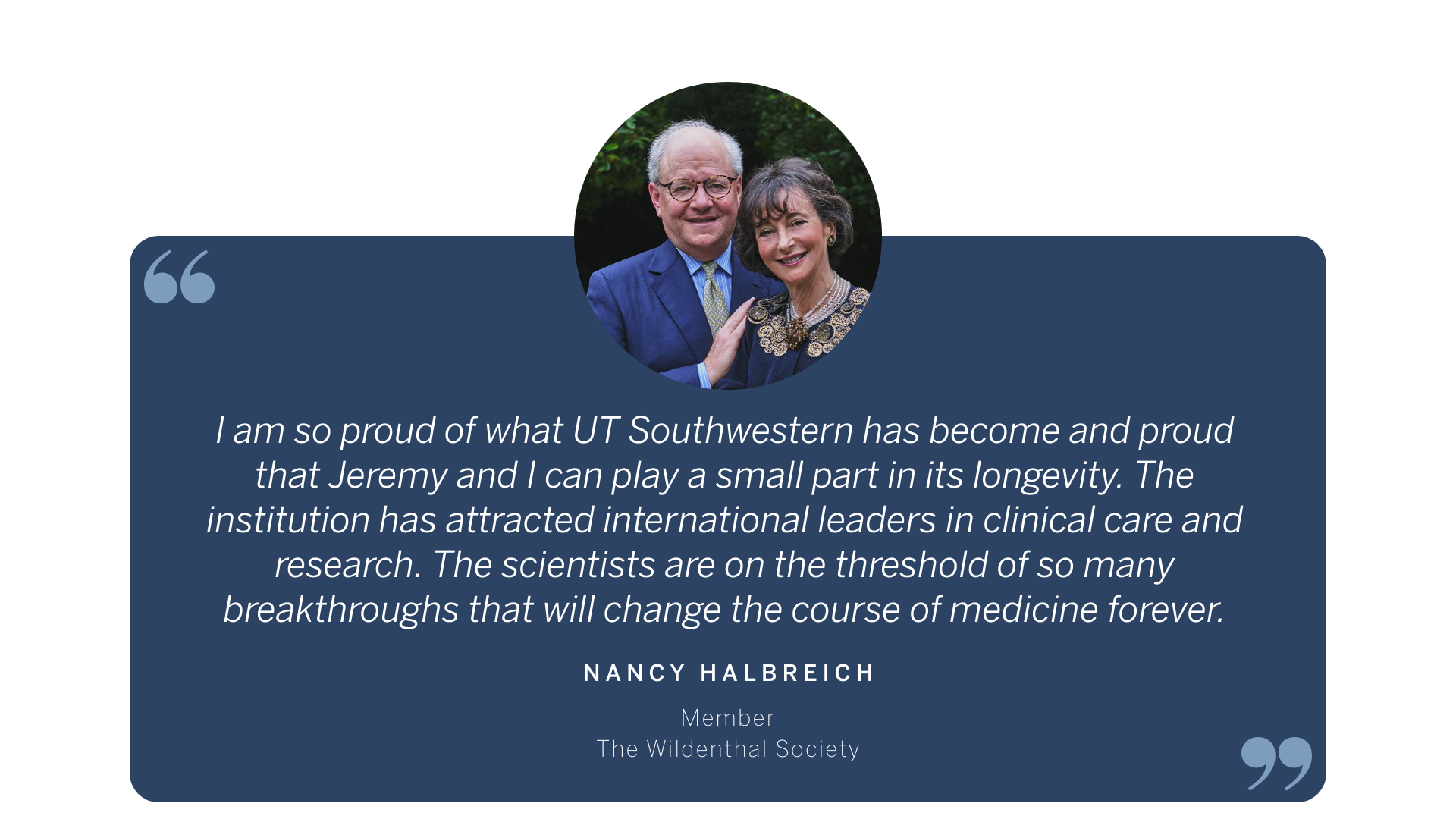 Gift planning is an opportunity to make the change you want to see in the world. Southwestern Medical Foundation established The Wildenthal Society (formerly The Heritage Society) in 1995 to recognize those who make planned gifts to benefit UT Southwestern Medical Center or Southwestern Medical Foundation. For many decades, these gifts have had a tremendous impact on our community, helping UT Southwestern to remain a leader in groundbreaking research, education, and patient care programs that are transforming the practice of medicine.